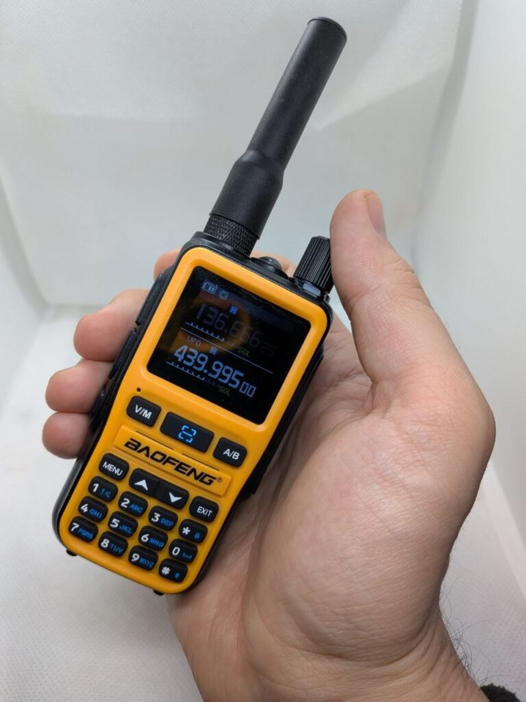 La Baofeng UV-5R Mini (o GT-5R alle volte nel mercato Italiano) non nasce per stupire con funzioni avanzate o costruzione “military grade”. Nasce per essere piccola, leggera, economica e sorprendentemente efficace. E, nel suo campo, centra l’obiettivo. È una VHF/UHF compatta, 5 watt, schermo a colori e con alcune comodità moderne (USB-C, Bluetooth), che punta tutto sulla portabilità.